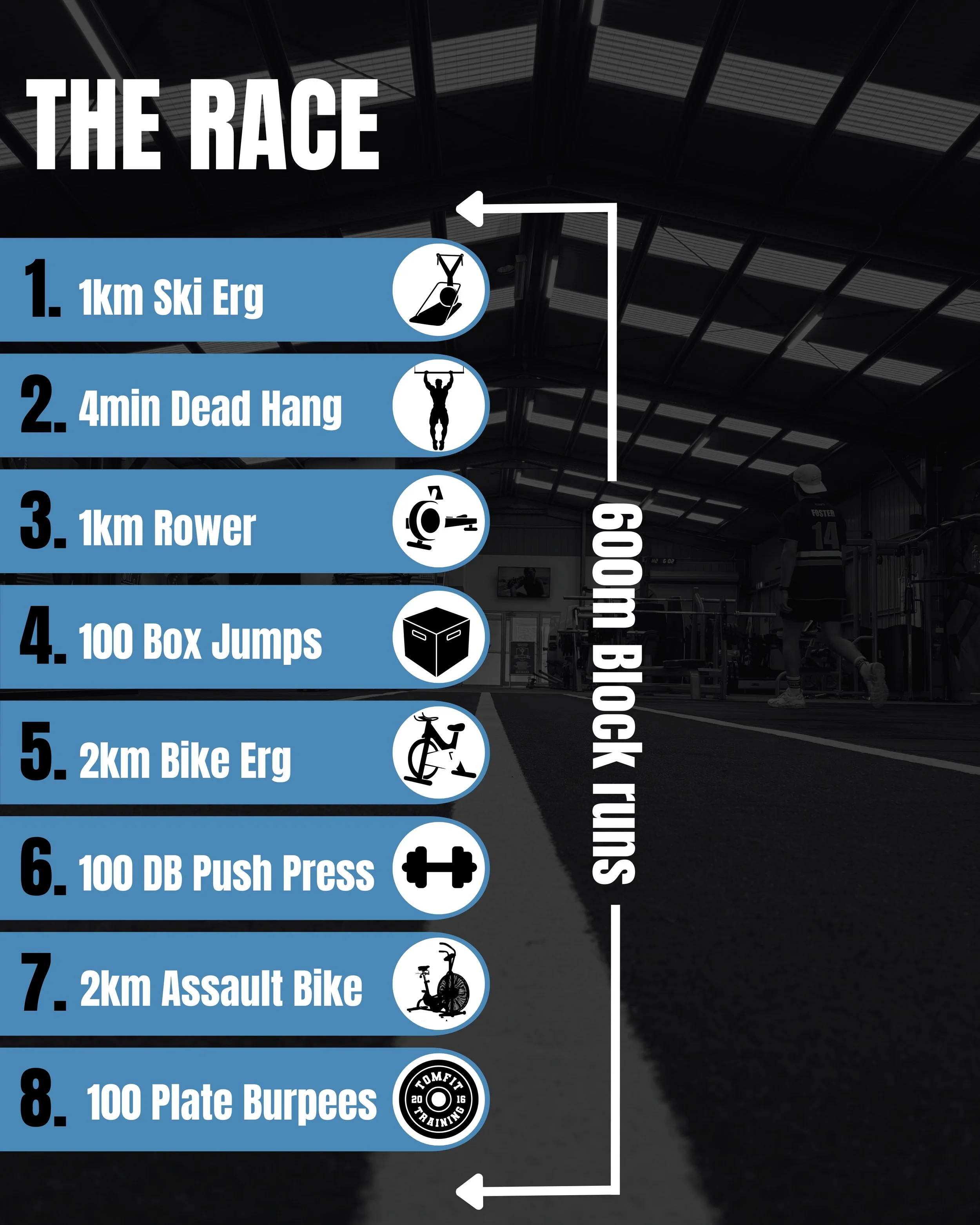 600m block run between each station